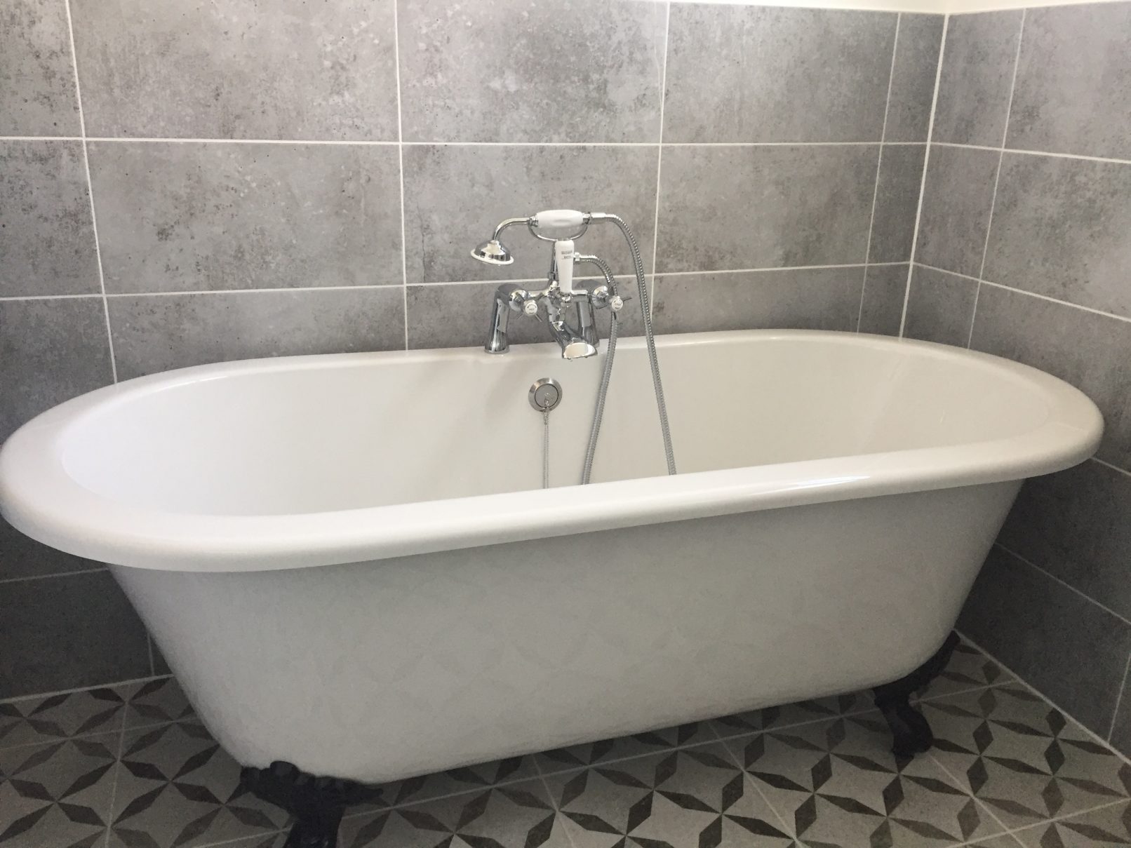 Traditional Bathroom with Freestanding Bath, Low Profile Shower Cubicle and High Level Toilet Cistern